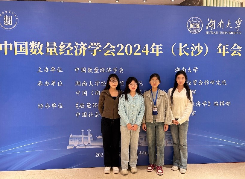 2024年11月1日至11月3日,中国数量经济学会2024年(长沙)年会在湖南省长沙市举行。本次会议由中国数量经济学会与湖南大学联合主办,来自中国社会科学院、清华大学、浙江大学、湖南大学等全国100多所高校、研究机构和期刊编辑部近800人参加会议。必赢官网金融与统计系教师褚翠翠博士、硕士生苏雅、张孝冉和王庆华应邀参加了本届年会,并同与会学者进行了深入交流。