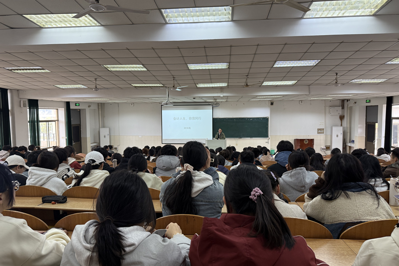 林钟高教授以“会计人生 你我同行”为主题,结合自身求学和工作经历,与大学生们分享自己在求学、教学、科研、管理工作中的人生感悟。他用鲜活的故事和朴实生动的语言告诉同学们什么是大学学习的精髓,阐述了如何面对不熟悉的工作领域、如何看待考公、考证与考研问题以及要在感恩中获得认知与成长等。他希望同学们要牢记习近平总书记对青年的殷切嘱托和期望,立志做有理想、敢担当、能吃苦、肯奋斗的新时代好青年。