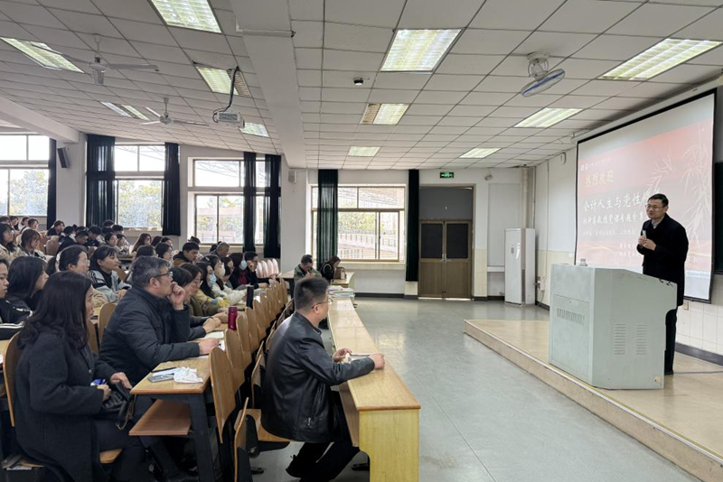 3月31日下午,必赢76net线路唯一官方网站在秀山校区阶教201举办专题宣讲报告,报告会由林钟高教授主讲。院学生第一、第六、第九党支部学生党员,2024级会计学全体学生,机关党委财务处党支部全体党员,院党委副书记 、纪委书记、副院长蒋磊以及会计系教师代表聆听了报告。报告会由必赢76net线路唯一官方网站院长章铁生主持。