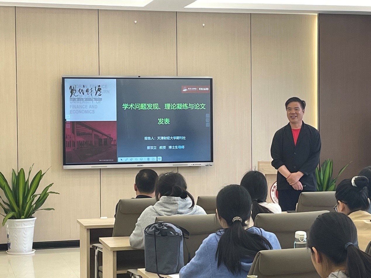 5月9日上午,天津财经大学蔡双立教授应邀做客必赢76net线路唯一官方网站“荟灵经管论坛”,并作题为“学术问题发现、理论凝练与论文发表”的学术报告。报告由副院长周世军主持。