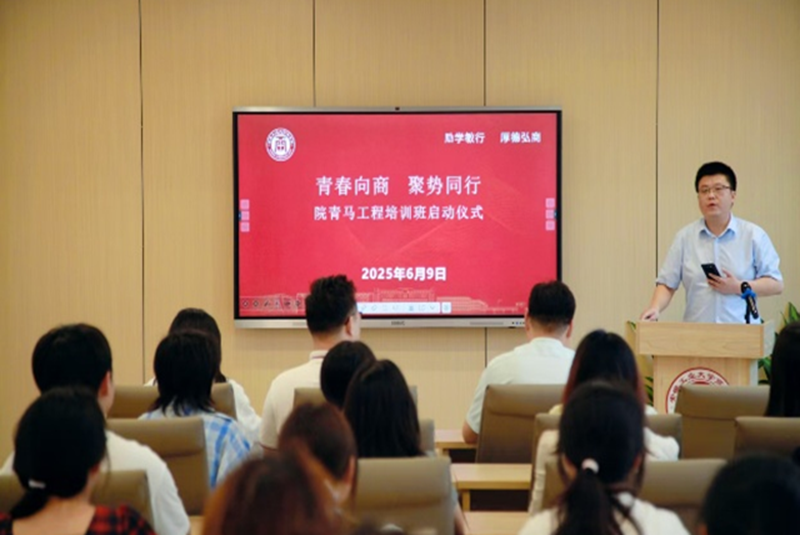 仪式伊始,蒋磊系统介绍“青马工程”培训班,围绕培训目标、往期成果展开讲解,并宣读考勤、考核等管理制度,明确纪律要求。随后,杜飞以专题授课的形式,从五个维度展开深入指导:一是筑牢信仰根基,引导学员坚定理想信念;二是践行服务宗旨,鼓励学员将务实作风融入日常工作;三是强化能力建设,传授学生工作中的沟通技巧;四是发挥示范作用,阐释个人成长与集体发展的共生关系;五是深化实践育人,号召学员走出理论舒适区。杜飞寄语学员,要将个人理想融入国家发展大局,以扎实的理论基础,在新时代浪潮中勇担使命、砥砺前行。
