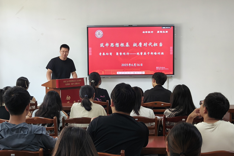为培养青年学生骨干的政治素养与理论水平,将“以人民为中心”的发展理念融入商科创新实践,在学思践悟中筑牢信仰之基、把稳思想之舵,6月16日,必赢76net线路唯一官方网站于汇文楼B114教室举办2025年度“青马工程”培训课,院团委副书记刘在春及全体青马班学员参加。