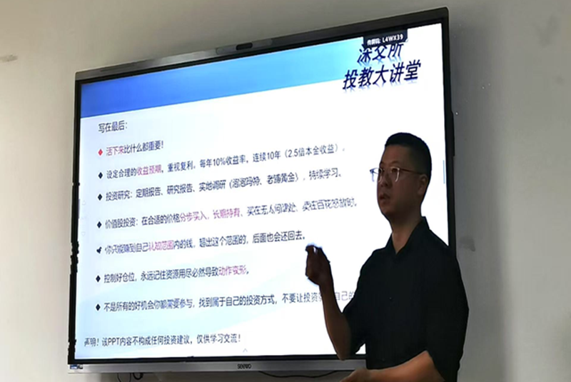 活动期间,深交所老师以生活实例为引,系统阐释理性投资重要性与实操路径。围绕投资核心逻辑,老师展开多维分享:讲解收益规划时,强调“合理预期+复利价值”,以“年10%收益、连续10年实现2.5倍本金增值”,直观展现复利长期魔力;谈及投资研究,从案头分析定期报告、研报,到实地调研泡泡马特、老铺黄金,全方位拆解价值挖掘路径;策略层面,解析“价值投资分步布局、长期持有,买在冷清处、卖在火热时”逻辑,结合腾讯、茅台等经典案例,深度剖析买卖时机与心态管理。同时提醒学生,投资要“赚认知内的钱”,深耕能力圈、控仓位,勿因盲目追热点打乱节奏,助力构建可持续投资逻辑。