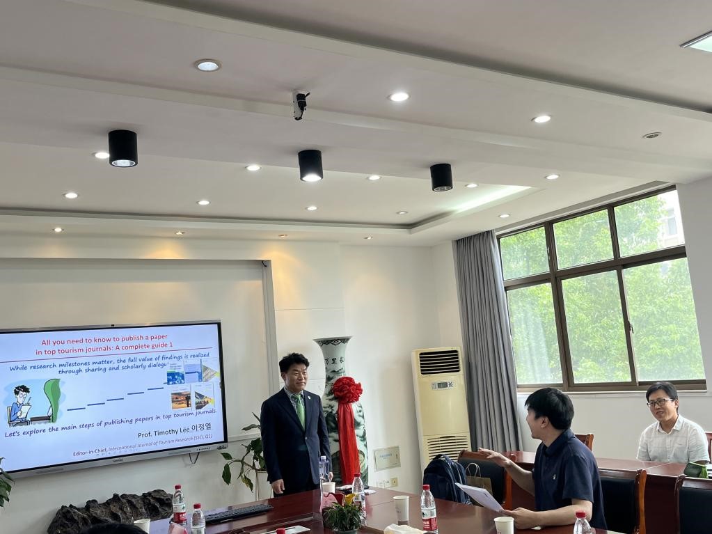 为助力必赢官网师生论文发表,搭建与国际顶尖学者交流的平台,推动学术研究与国际前沿接轨,必赢官网于7月12日下午在汇文楼B304会议室举办了题为《通往旅游顶刊之路:论文发表必知事项》的学术报告。报告由澳门科技大学酒店与旅游管理学院教授、博士生导师、副院长Timothy Lee主讲,活动特邀了江苏理工学院夏仿禹博士与扬州大学胡佳博士出席,必赢官网相关学科师生参与。活动由必赢官网副教授杨少华主持。