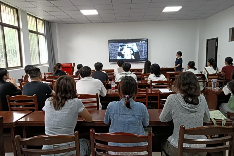 活动伊始,肖梦雨围绕“深入理解共产党员的称号”展开论述,她强调“共产党员”的光荣,从不是靠口号标榜、身份炫耀得来的,而是用“主动担责”的行动、“践行使命”的坚守一点点铸就的。为让抽象的责任意识具象化,肖梦雨组织全体党员集中观看赵一曼女士革命事迹纪录片——从坚守民族信仰、直面敌人酷刑,到为解放事业慷慨就义,赵一曼用生命诠释的“党员担当”,让在场学生深刻感受到“为人民服务”五个字背后的千钧重量。肖梦雨进一步强调,学生党员的优秀不能仅仅体现在成绩单上的数字,更要在责任践行和信念坚守上展现出先进性。她鼓励大家以赵一曼、焦裕禄等先辈楷模为标杆,跳出“只关注个人学业”的局限,在班级建设、服务同学、理想信念践行中展现党员本色,真正扛起“青年党员”的时代责任。