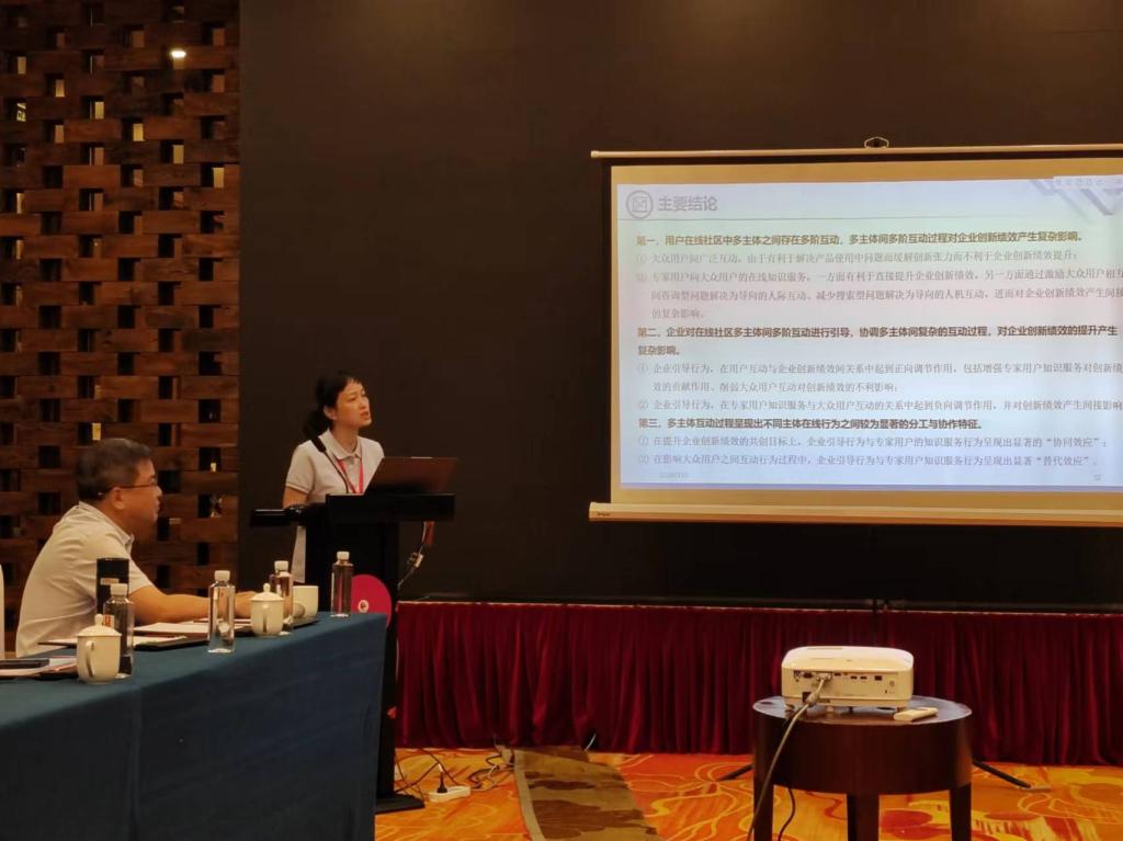 张军在报告中首先基于理论分析提出在线社区多主体互动过程对企业创新绩效影响的整体性研究框架。在此基础上,选择鸿蒙操作系统(Harmony OS)开发过程中用户在线社区中多主体行为为研究对象,利用Python抓取并追溯社区中多主体行为数据并建立数据集。然后,先采用主成分分析法与内容分析法提取核心概念,将理论框架细化为具有鸿蒙情境特征的细化模型。最后,采用结构方程建模与层次回归分析方法进行模型检验。报告赢得与会者的共鸣和热烈讨论。