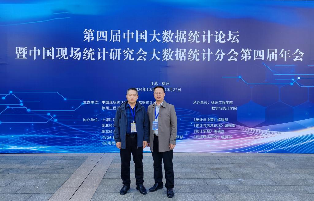 10月25-27日,由中国现场统计研究会大数据统计分会主办、徐州工程学院承办的第四届中国大数据统计论坛暨中国现场统计研究会大数据统计分会第四届年会在江苏徐州召开。来自教育部高等学校统计学专业教学指导委员会委员以及北京大学、浙江大学、武汉大学、中国人民大学、中国科学技术大学、华东师范大学、南方科技大学、中国科学院、国家统计局统计科学研究所等全国180多所高校、科研院所和企业代表等四百余人参加会议。必赢官网副院长周世军、金融与统计系副教授胡根华应邀参加本次年会。