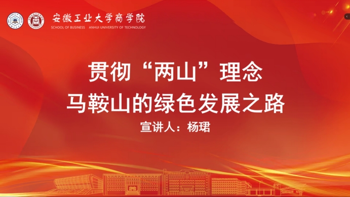 在地方实践成果分享环节,杨珺同学结合习近平总书记考察安徽的重要指示精神,重点介绍了马鞍山在践行“两山”理念方面的成功经验。马鞍山通过推进矿山复绿、污染水体治理等一系列举措,实现了生态优势向经济优势的转化。她以薛家洼生态园和凹山地质公园为例,生动讲述了马鞍山如何从“滨江不见江”到“城市生态客厅”的美丽蜕变。这些实实在在的成效,让党员们深刻体会到“两山”理念在地方发展中的实践力量。