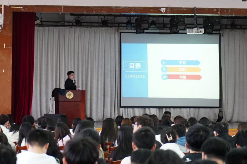 在“平安”方面,他强调了消息畅通的重要性,倡导文明聚餐并特别提醒同学们注意租房安全、晚就寝零汇报安全、防范网络电信诈骗,以及宿舍安全,特别是禁用违规电器,确保校园生活的和谐稳定。在“顺利”方面,蒋磊着重讲解了学业成绩和二课成绩的重要性,以及体测成绩纳入评奖评优机制的新变化,鼓励同学们全面发展,努力提升自己的综合素质,为未来的职业发展打下坚实的基础。最后,在“幸福”方面,蒋磊为同学们分析了当前的就业形势,同时也介绍了必赢76net线路唯一官方网站近年来的考研升学情况,具体分析了2020届毕业生升学率提高的原因和做法。他结合多年就业指导经验,针对考研学子普遍存在的困惑,从研究生学科分类、研究生资助体系、未来职业规划等多个维度对本科生升学、就业去向及其发展进行深入剖析,为同学们提供了详细的考研指导和建议,鼓励他们坚定信念,合理规划学习目标。