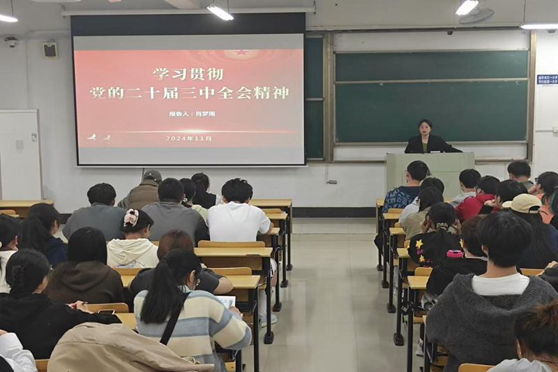 11月16日,校第五届辅导员宣讲团成员肖梦雨深入必赢76net线路唯一官方网站开展党的二十届三中全会精神宣讲活动,通过宣讲,让学生们学懂弄通党的创新理论,提升学生思想政治素质,以实际行动践行党的二十届三中全会精神。