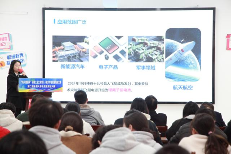 选手们依次上台结合PPT进行演讲。成长赛道选手围绕自我认知、职业分析、成长行动、规划调整等方面展开。他们通过霍兰德职业测试深化自我认知,结合政治、经济、社会、技术等多维度进行职业分析,分享实践探索、以赛促学的经历,并灵活调整职业规划,目标职业涵盖西部计划基层工作者、有机储能研发工程师等。就业赛道选手则聚焦社会背景、应用场景、国家政策及行业岗位认知,深入剖析岗位需求与自身能力的匹配度,通过实践实习提升专业技能。目标职业包括人力资源专员、煤化工工程师等。各位选手演讲结束后,评委老师对他们的展示进行了肯定,同时提出了未来的改进方向。
